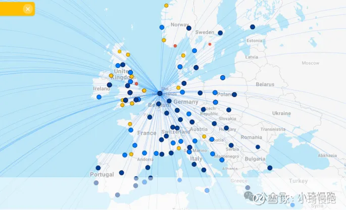 反观早期竞争对手爱尔兰航空、英国航空、荷兰航空等,仍只能聚焦都柏林、伦敦、阿姆斯特丹等核心市场。