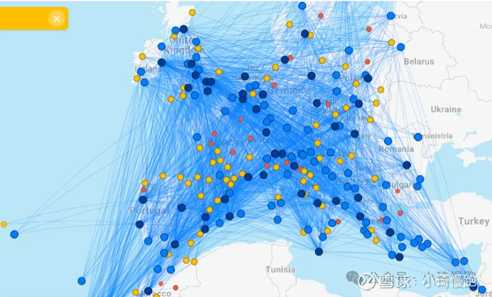 图3-1:2025年瑞安航空的航点及航线分布情况