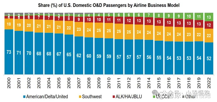 图4-3:美国各类不同商业模式航司的国内市场市占率变化趋势