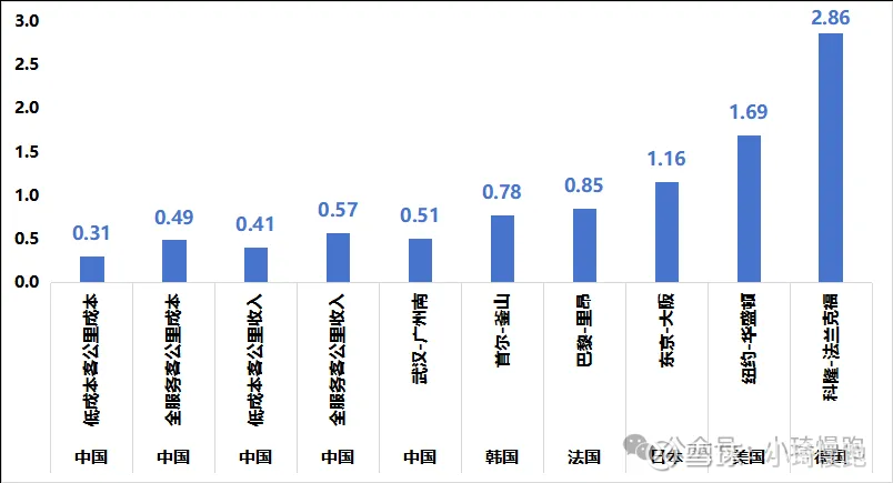 出行成本是旅客选择出行方式的最重要决策因素。在韩国、法国、日本、美国、德国等国家的高铁客公里票价为0.78-2.86元/公里,这些国家的航司可以通过对标高铁票价或采用比高铁票价低的策略来吸引旅客。