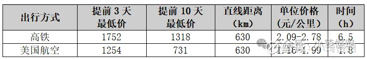 表2-1:美国华盛顿-波士顿高铁与机票均价对比(元)