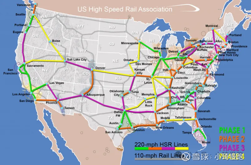 美国高铁受制于各种原因,虽有规划,但建设速度慢,目前高铁总里程仅735公里,且实际运行速度低于100km/h。高铁虽在短距离对民航有影响,但影响极其有限。