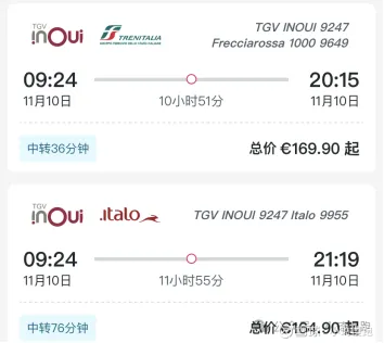 数据来源:raileurope、携程网,2025年11月抽样数据。