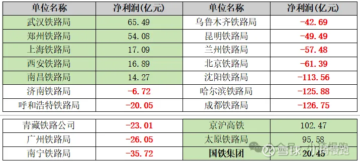 事实上,全国18个铁路局的盈利情况也非常不理想,大部分铁路局常年亏损状态,还需要补贴等来维持。如果扣除最赚钱的京沪高铁(2018年盈利102亿元)、大秦铁路(太原铁路局2024年盈利96亿元)之后,全国铁路系统亏损会更严重。