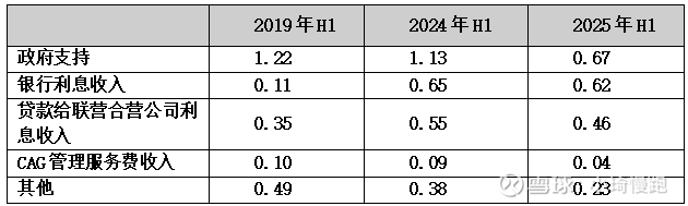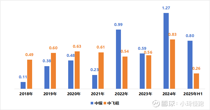 3.其他收入:2025年H1中银为0.80亿美元、中飞租为0.26亿美元,分别下降15.6%、27.8%。中飞租其他收入下降的最主要原因是政府支持金额同比下降41%,金额也减少0.46亿港币。