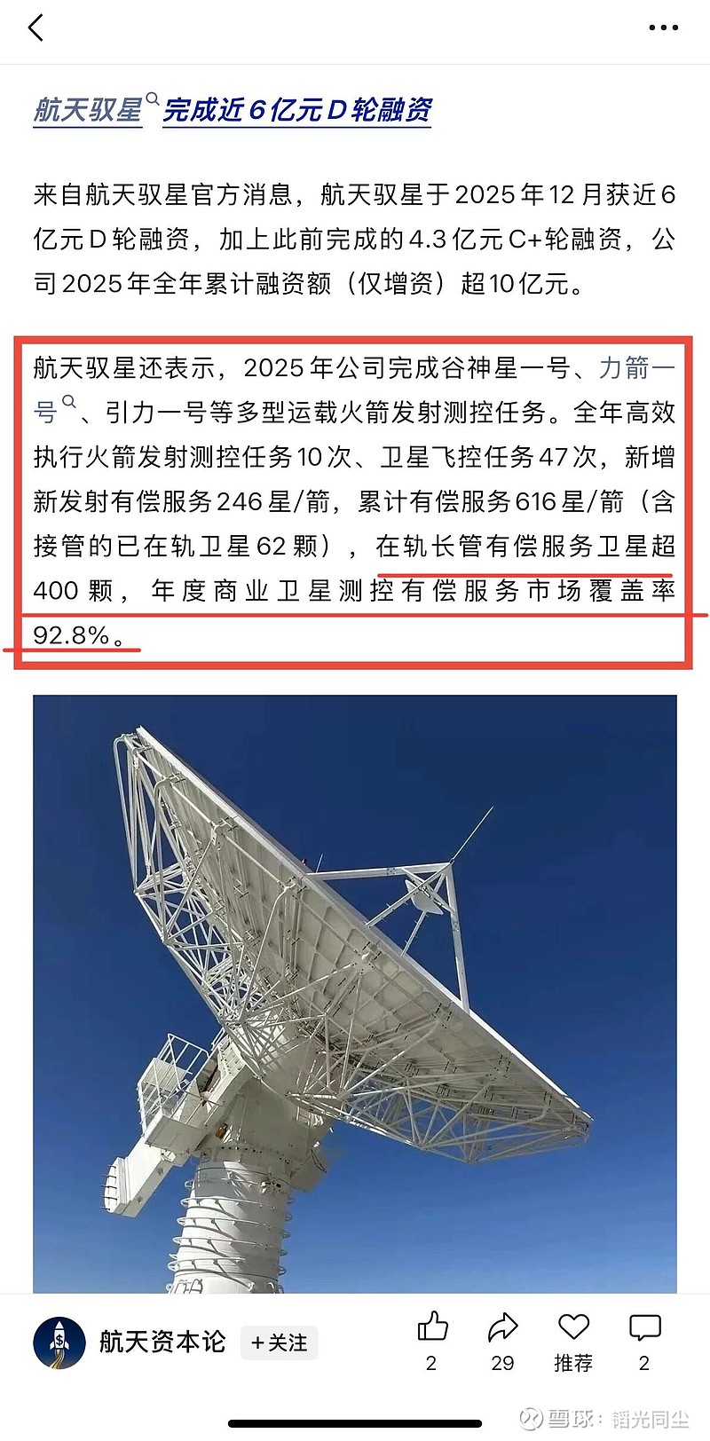 航天驭星是中国商业卫星测运控绝对龙头,第三方商业测控细分赛道全国第1,市场份额约92.8%(2025年底),核心地位稳固。
