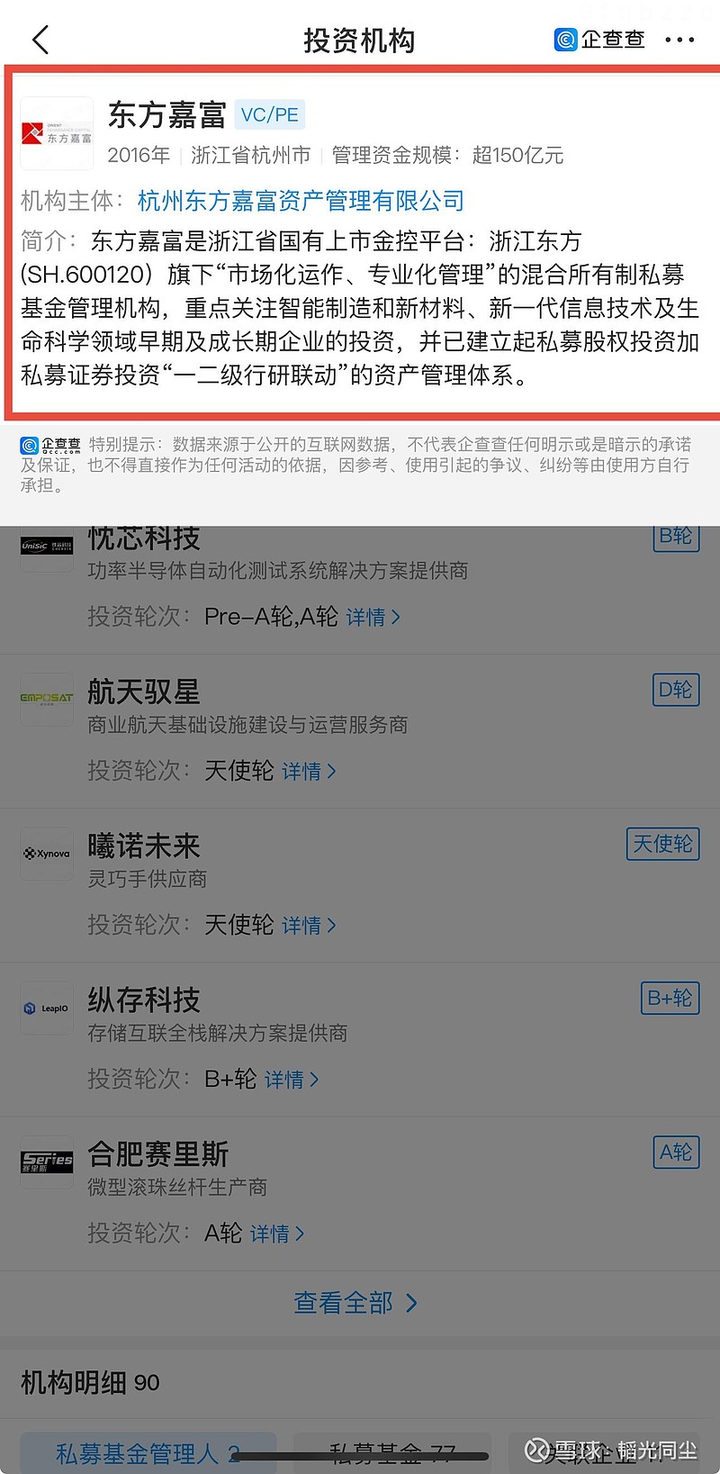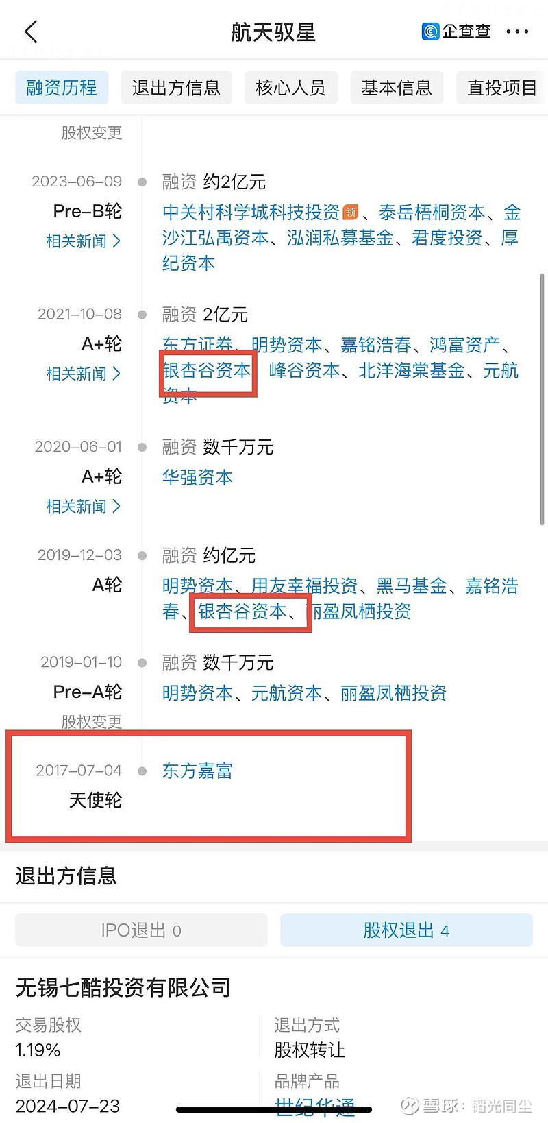 东方嘉富是航天驭星天使轮唯一投资方,并且东方嘉富管理的杭州银杏堡股权投资合伙企业,参与了航天驭星的A+轮、A++轮融资。