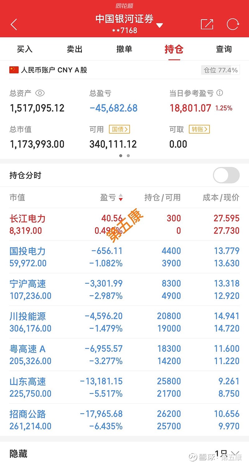仓位降到7.7成,