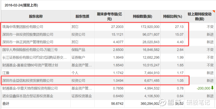 而一体医疗的原股东一体集团、一体正润、金益信和分别新增股份为15.07%、4.40%、1.05%。具体持股比例如下: