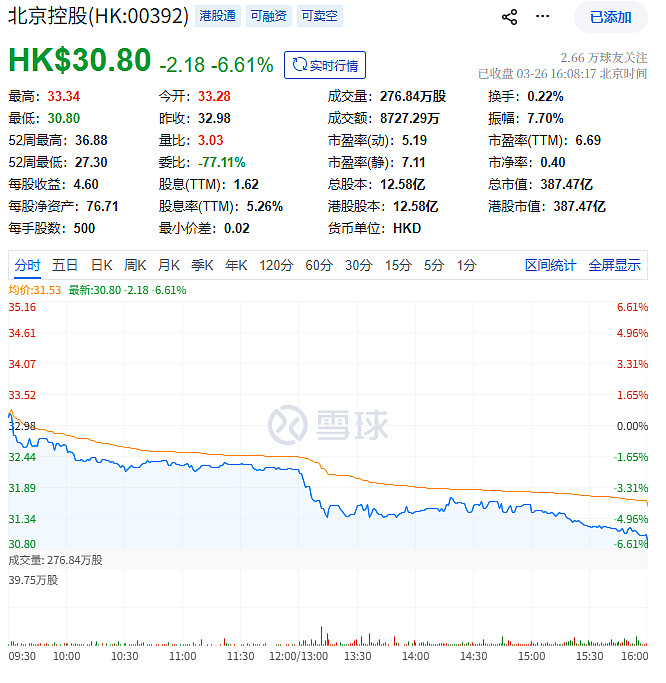 $北京控股(00392)$ 今晚出年报却放量大跌6.61%。年报信息泄露了还是大家恐惧了,今晚就知道。千万不要是前者,如果是前者的话就是双击----经营不善说明管理层能力不行+信息泄露说明管理层操守有问题,就不值得投资了,只能打一炮提裤子走人,哦不,被打一炮提裤子走人。