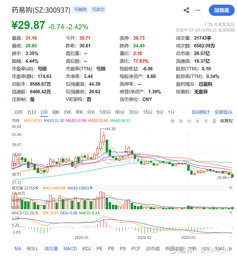 $药易购(SZ300937)$