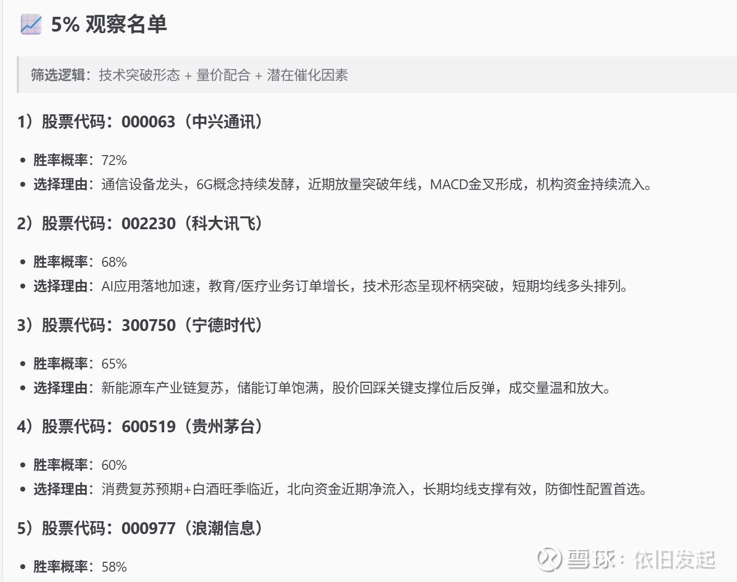 最后测试了一把,成功运行给出了分析报告并且给出了5个观察股。