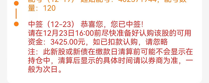 今天中签了。