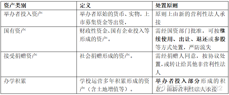 其中,财务清算与产权分割是最关键的环节,清算组必须将学校的净资产(资产减去负债)按来源精确划分为四类,并提供合法有效证明:
