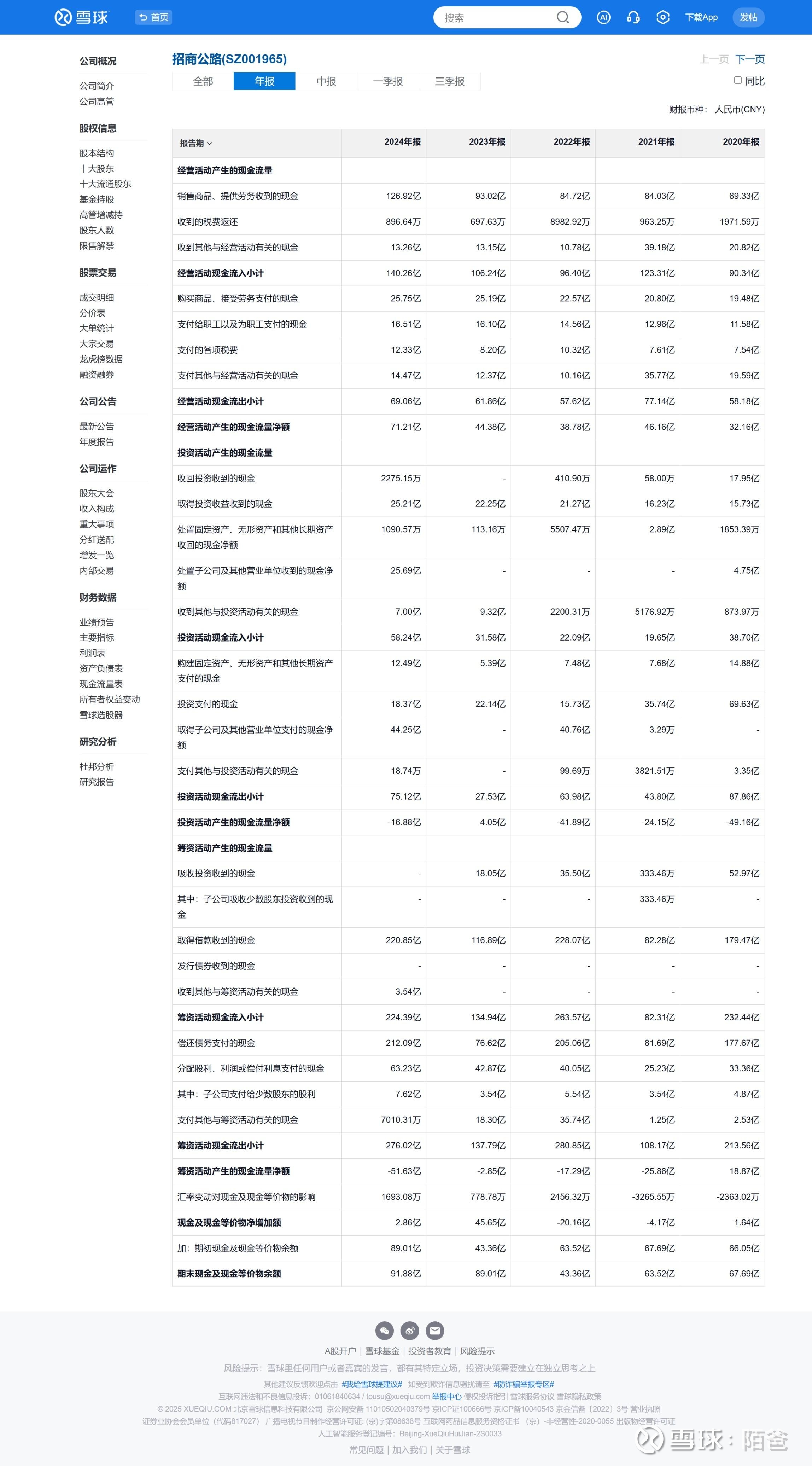 经营现金流和自由现金流数据来源于《招商公路2024年年度报告》 -