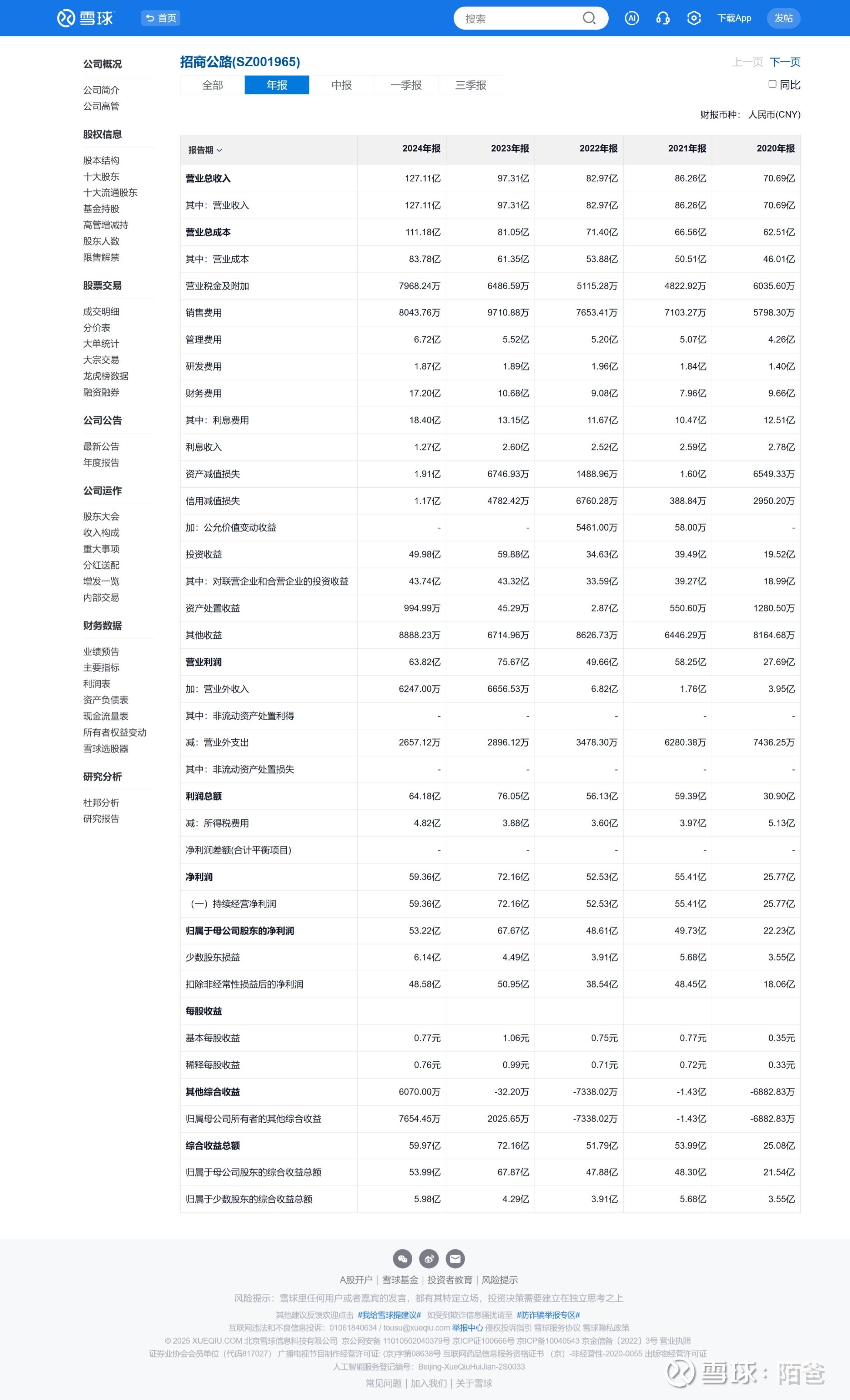 净利润反映了招商公路整体盈利能力的波动增长,2023年为高点,2024年有所回落。投资者需关注成本控制及收入增长的可持续性。