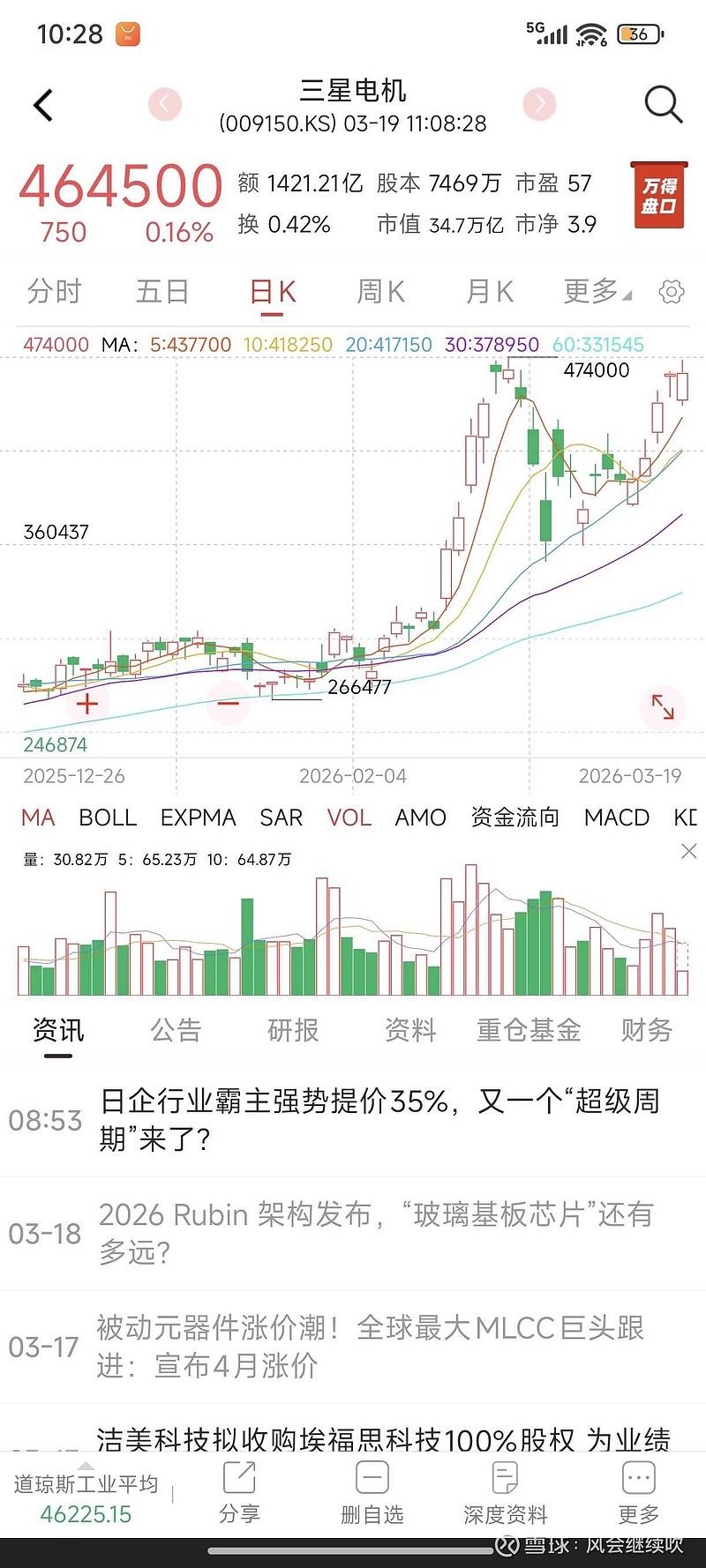 三星电机在韩股指数大跌时翻红,接近新高,国内做mlcc应该多看看三星电机