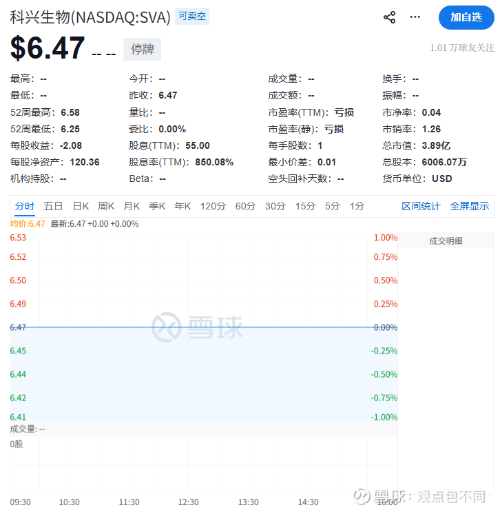 回顾过往,2019的时候科兴生物还被纳斯达克以“公司治理混乱”为由强制停牌,股价也定格在6年前的6.470美元/股,总市值为3.89亿美元。