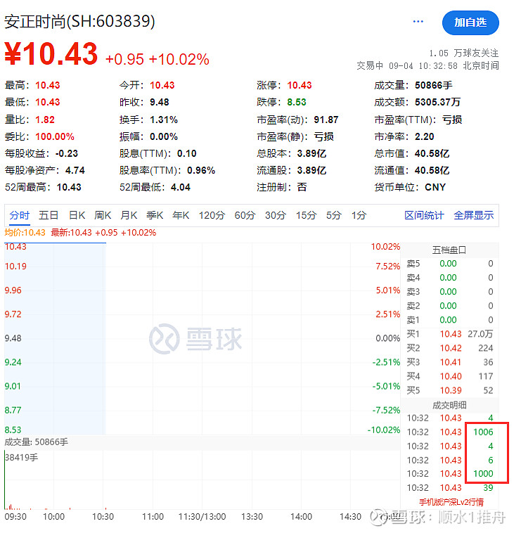$安正时尚(SH603839)$