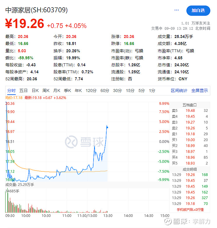 $中源家居(SH603709)$