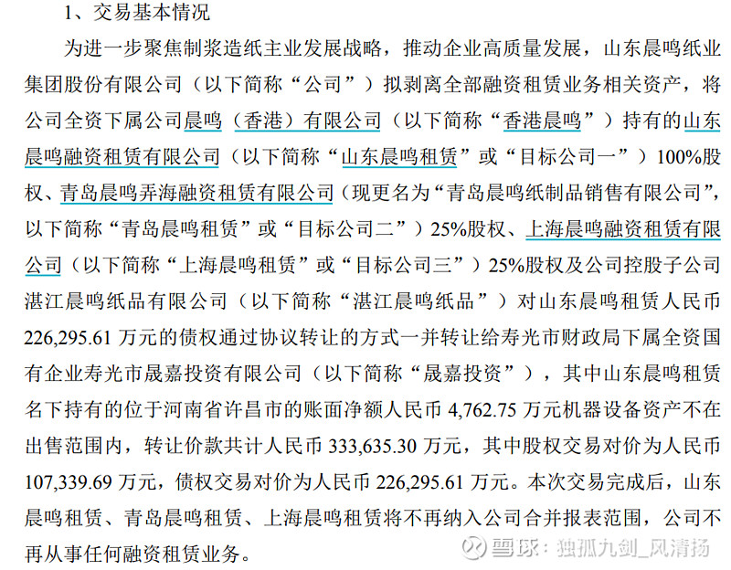 晨鸣把原来最主要的出血点融资租赁业务给剥离出去了,卖给了寿光市财政局下属的全资国有企业,卖价是33.4亿(股权是10.7亿、债权是22.7亿)。