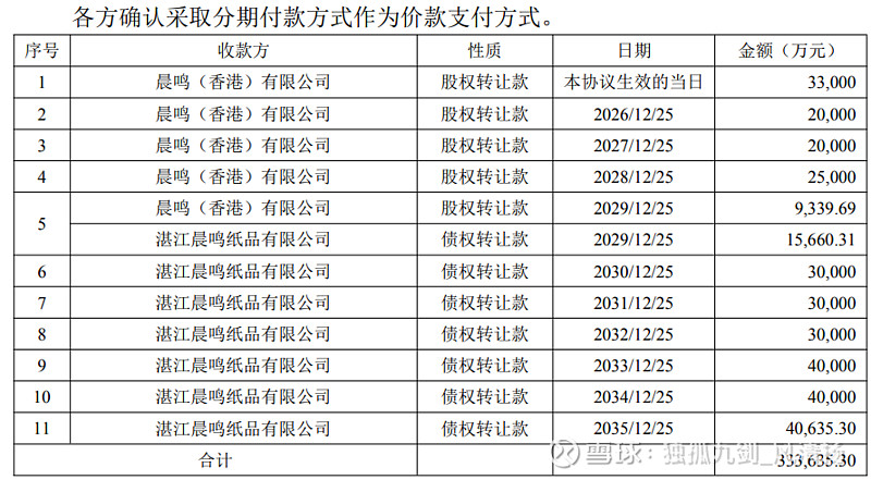 但是再看后一张图-关于付款支付条件,33.4亿的总额要分10年未来分期付款完毕。也就是说当前剥离出去就是会计上面的做账,实打实能够回收的现金流非常有限,更何况33亿之于账面接近300亿的净有息负债,也是杯水车薪。