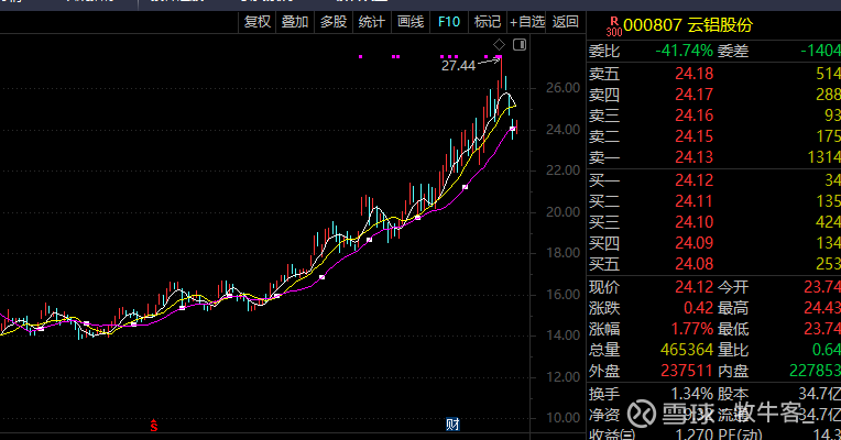 由于铝供给被政策限制,这样的投资预期早就被市场兑现了,不论是最便宜的火电神火股份,还是最便宜的水电云铝股份,早就涨得没有性价比了。