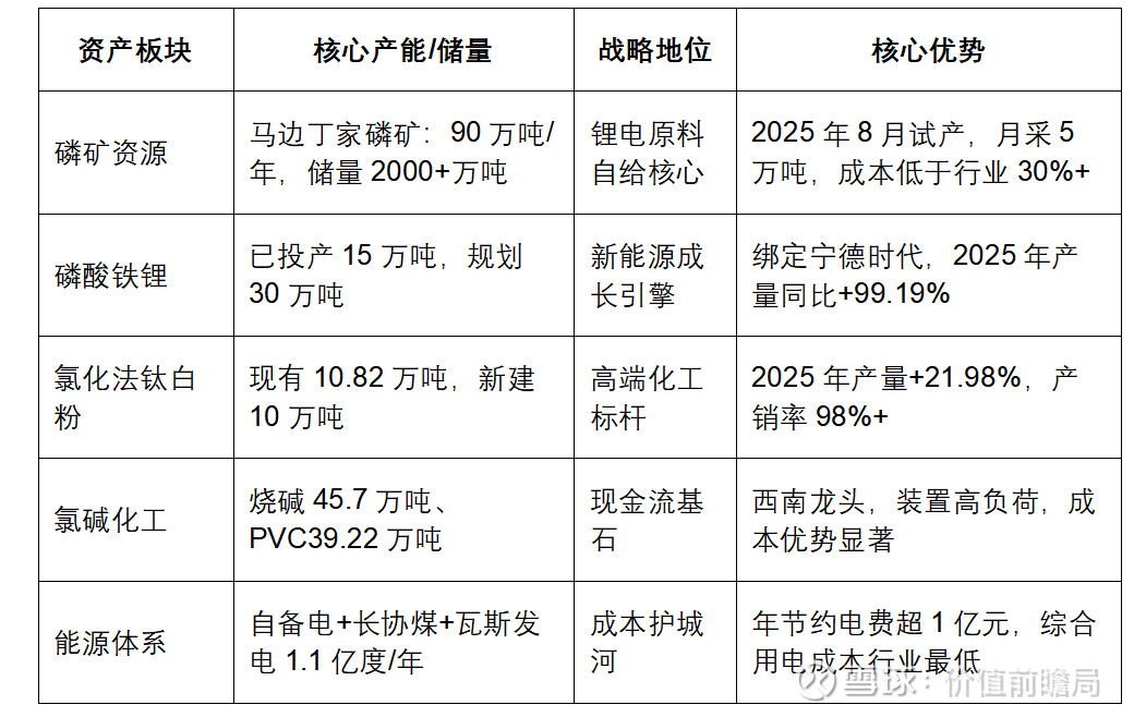 1.2 核心资产全景:磷矿+钛白粉+磷酸铁锂+氯碱+能源闭环
