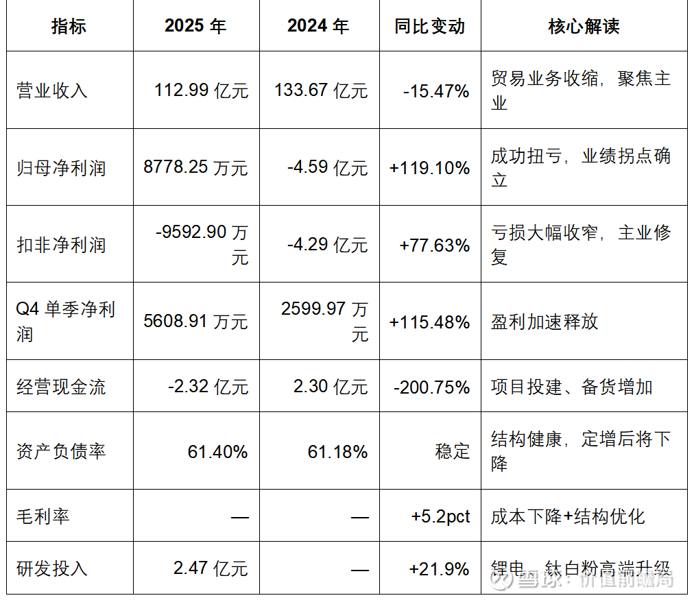 - 经营表现:2025年产量4.94万吨,同比+99.19%,销量4.59万吨,同比+139.06%,营收10.91亿元,同比+100.78%,成为业绩扭亏核心动力;