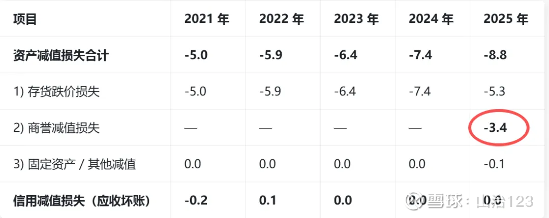 第1项是资产减值损失,2025年8.8亿 同比+1.4亿