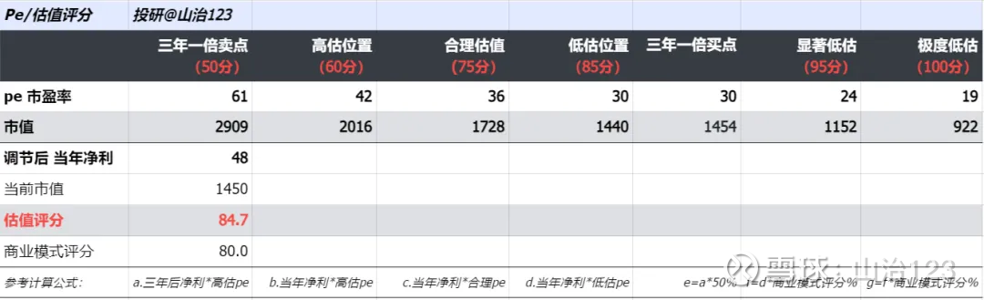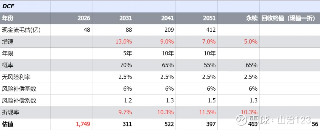 各阶段增速和折现率如上表,净利/现金流我按2026年预测的48亿为基础、前瞻预测那篇讲过、这里不赘述了
