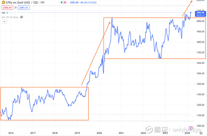 美盘收盘维持2076以上的话先看2400,月线周线其实都已突破,金股应能有一波估值修复,股指调整也不会拖累新低