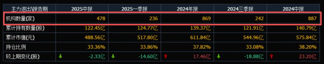 具体到京东方A,就是几百家机构的进进出出,如下图所示: