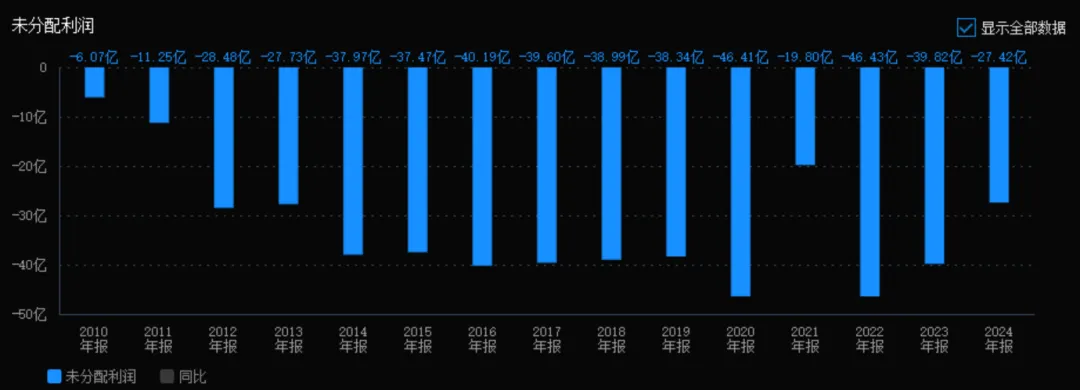 最近两年,2023年度、2024年度,彩虹股份有利润,但也没有分红。因为,分红有一个前提条件,未分配利润为正。换句话说,想要分红,需要先把历年的亏损抹平。而彩虹股份的未分配利润,长年为负。哪怕是2021年那种TV面板的高光时刻,也没能抹平。所以,彩虹股份,有正当理由,一直不分红。