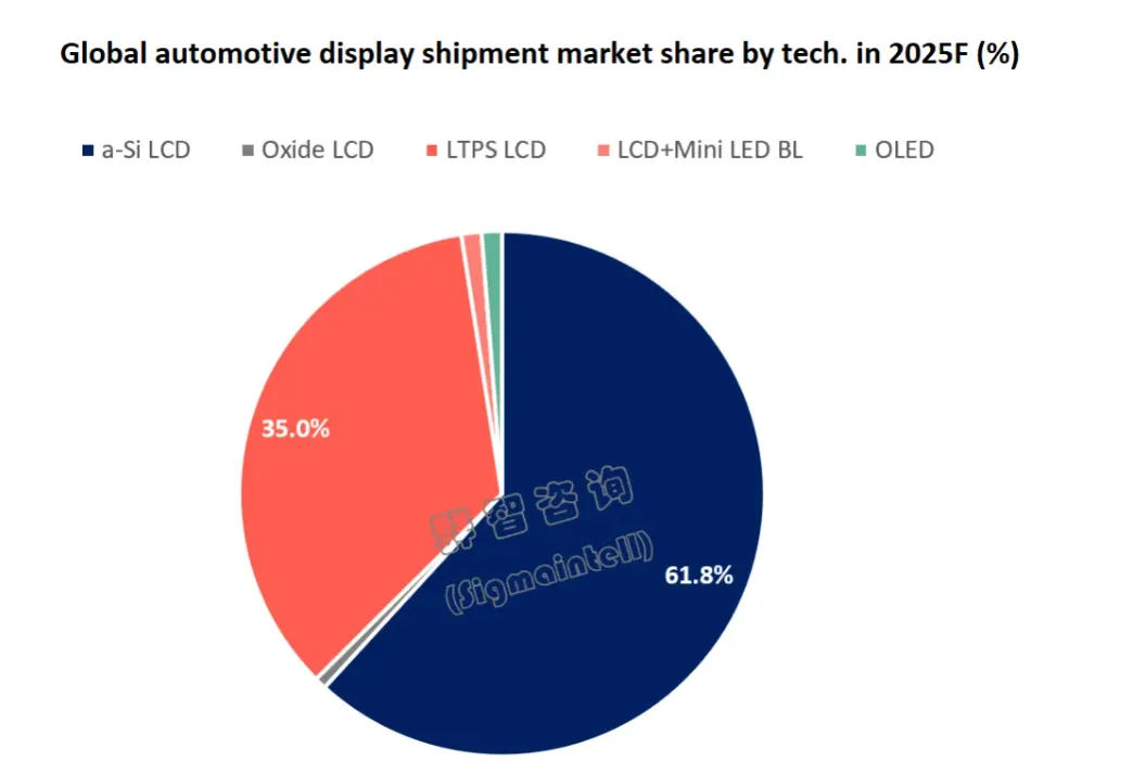 a-Si LCD、LTPS LCD两种传统的LCD,2025年合计市占率约97%。