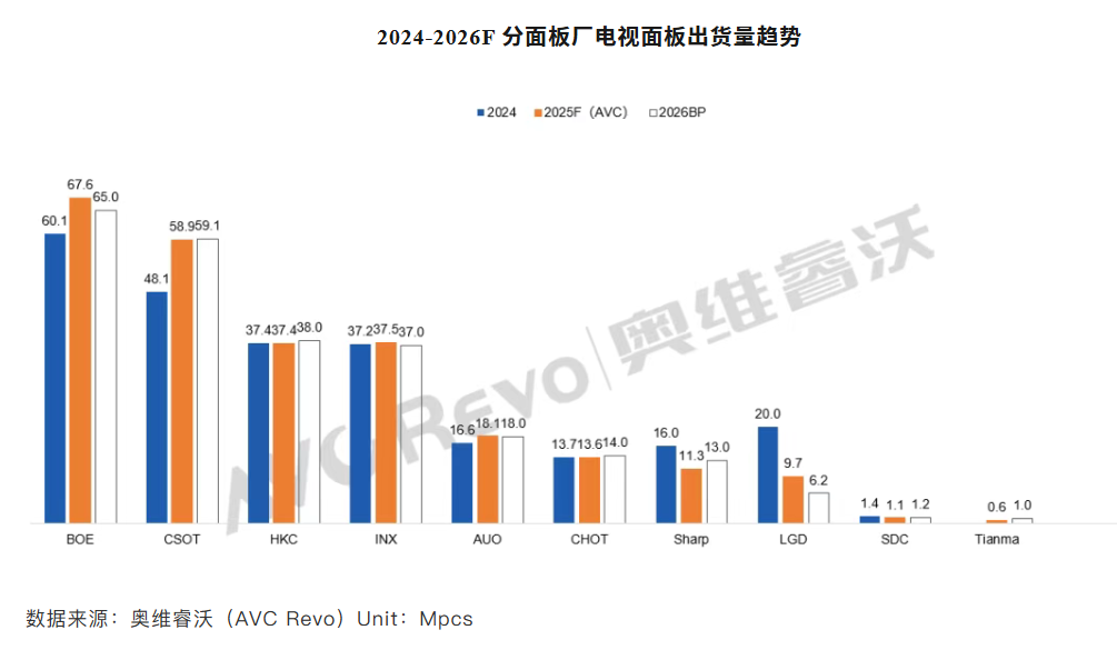 注意,AVC的数据,是包括LCD、OLED两种TV面板的,所以还有三星显示、LGD的数据。为了行文方便,本文主要引用洛图的数据。