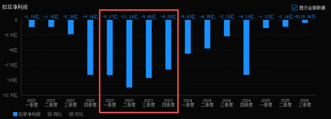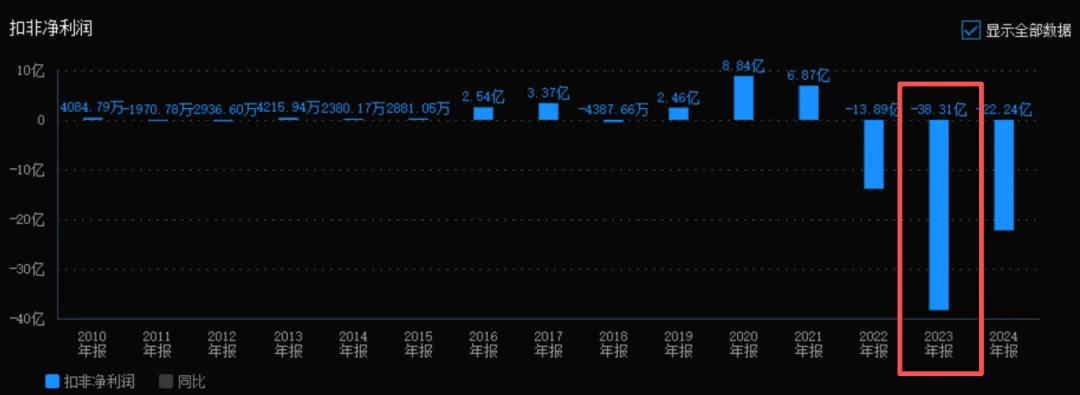 所以,我们看下,深天马A的数据,2023年三季度,单季扣非亏损11亿,2023年全年亏损38亿。当年,因为亏损太多,深天马还收到了深交所的问询函。