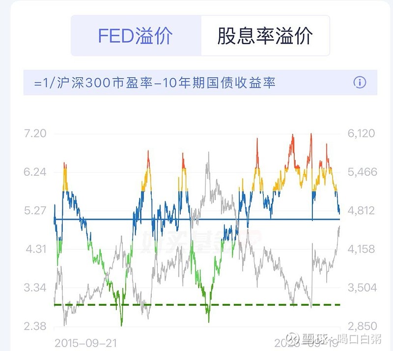 该指标是一个动态展示债券(无风险利率)和股票价格性价比差异的指标。