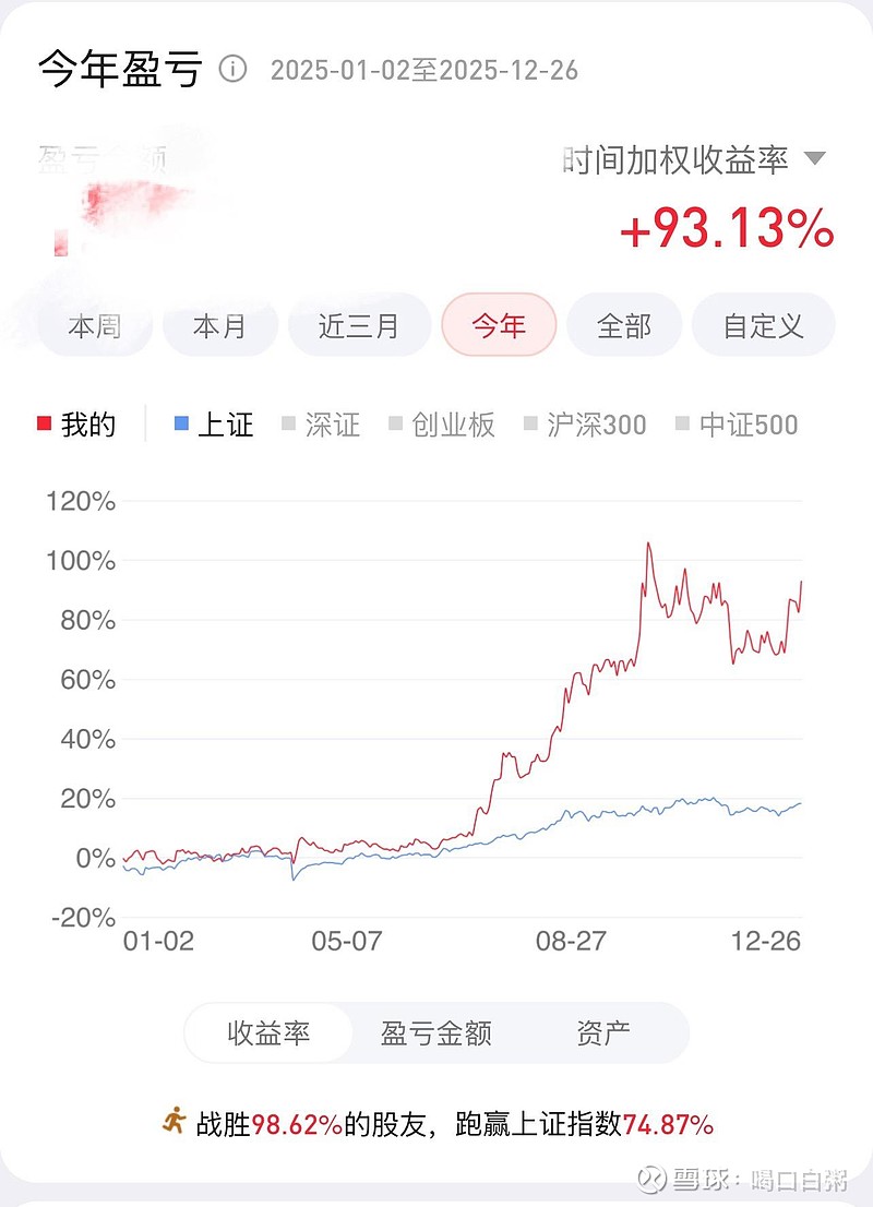 今年我的所有操作都是在盘中全公开,截至目前,2025总计取得了93%收益。