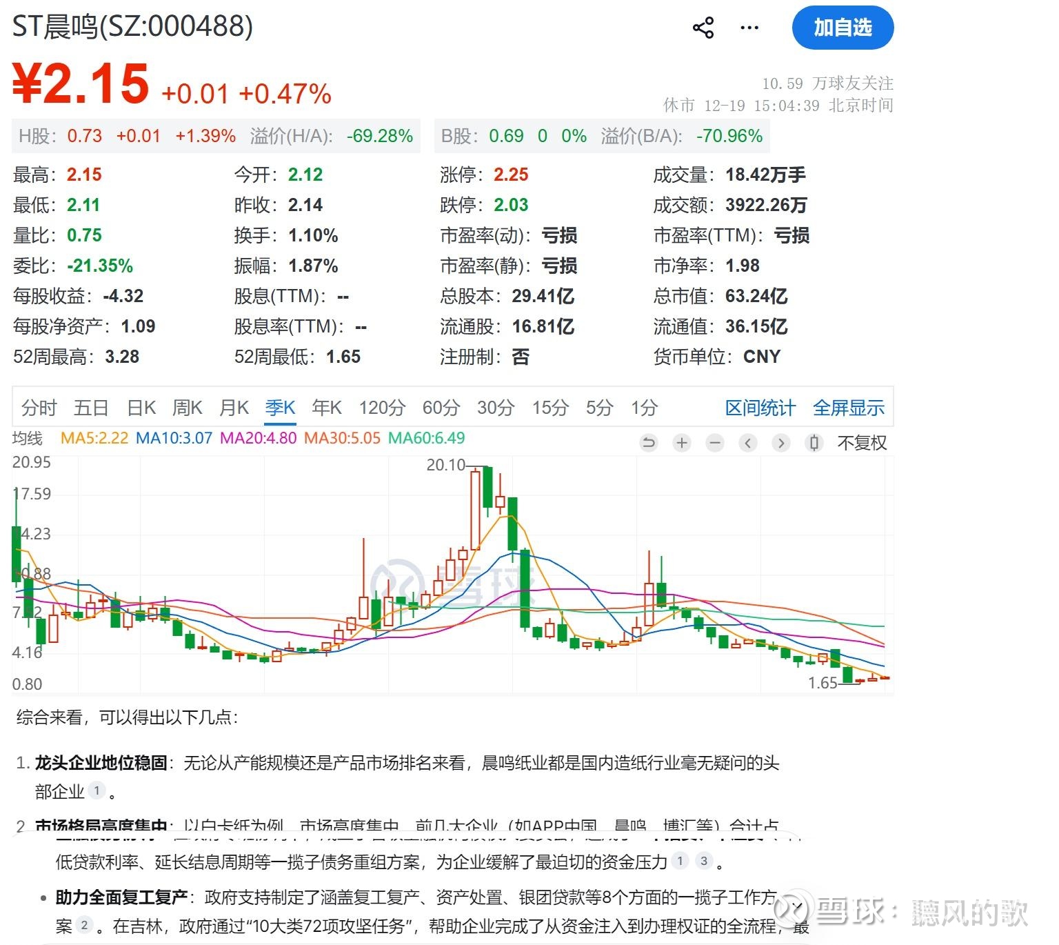 $ST晨鸣(SZ000488)$ $晨鸣纸业(01812)$ $ST晨鸣B(SZ200488)$