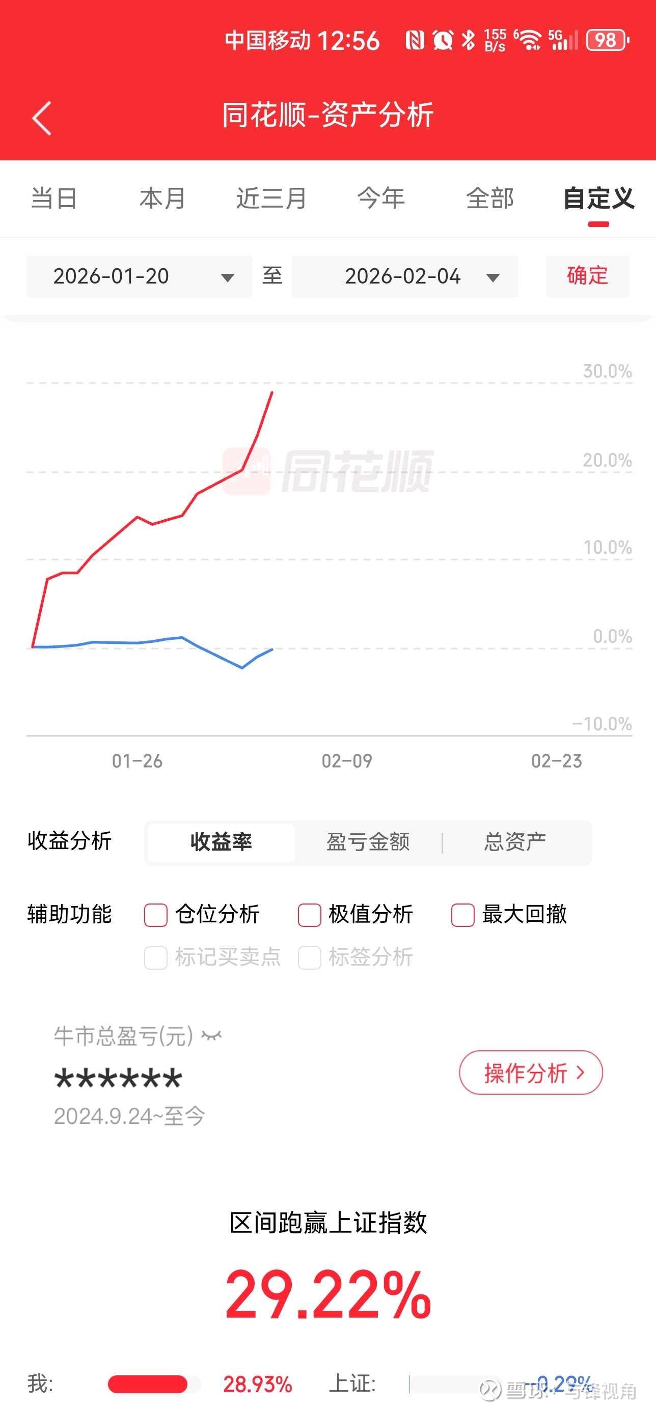 不知不觉粉丝到1000了,这是一个属于我和大家的好日子。看了一下同花顺和雪球的记录,从1月18号到2月4号,13个交易日,投资收益率29%,平均仓位53%,粉丝从100增长到1000,增长了10倍,投资收益率远远低于粉丝的增长率。还是对不住大家的厚望啊。