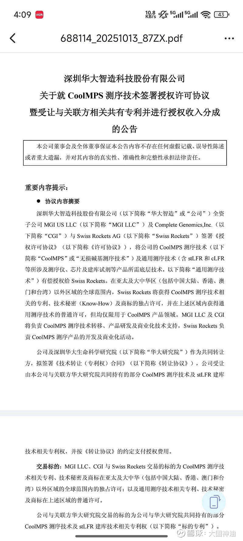 $华大智造(SH688114)$