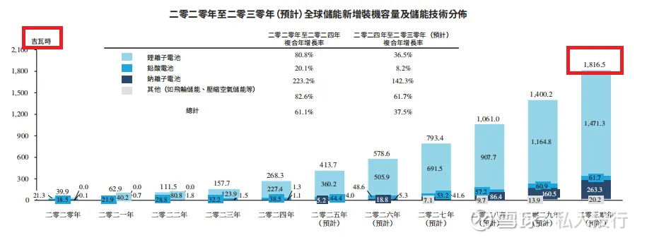 还看到了双登股份8月份发布的港股上市的招股说明书,引述弗若斯特沙利文的研报,预计2030年储能电池出货量1816GWh(含铅酸电池):