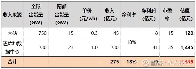 下文盈利预测,大储部分将参考宁德时代的数据,而通信与数据中心部分则参考双登股份的数据(保守一些)。