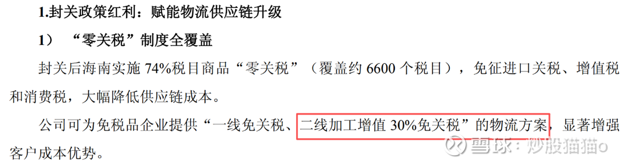 ②海南加工增值超过30%的货物进入内地免征进口关税,公司旗下洋浦仓库定位海南制造业仓储物流服务,可为免税品企业、世界500强企业提供加工增值制造后,免税销往内地,公司从中获取高毛利的供应链管理收益。