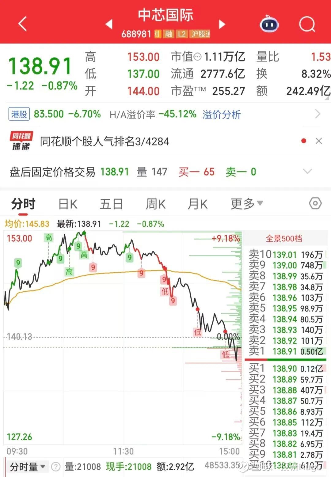 中芯国际早盘一度上涨超9%,午后迅速翻绿,波动幅度接近10%