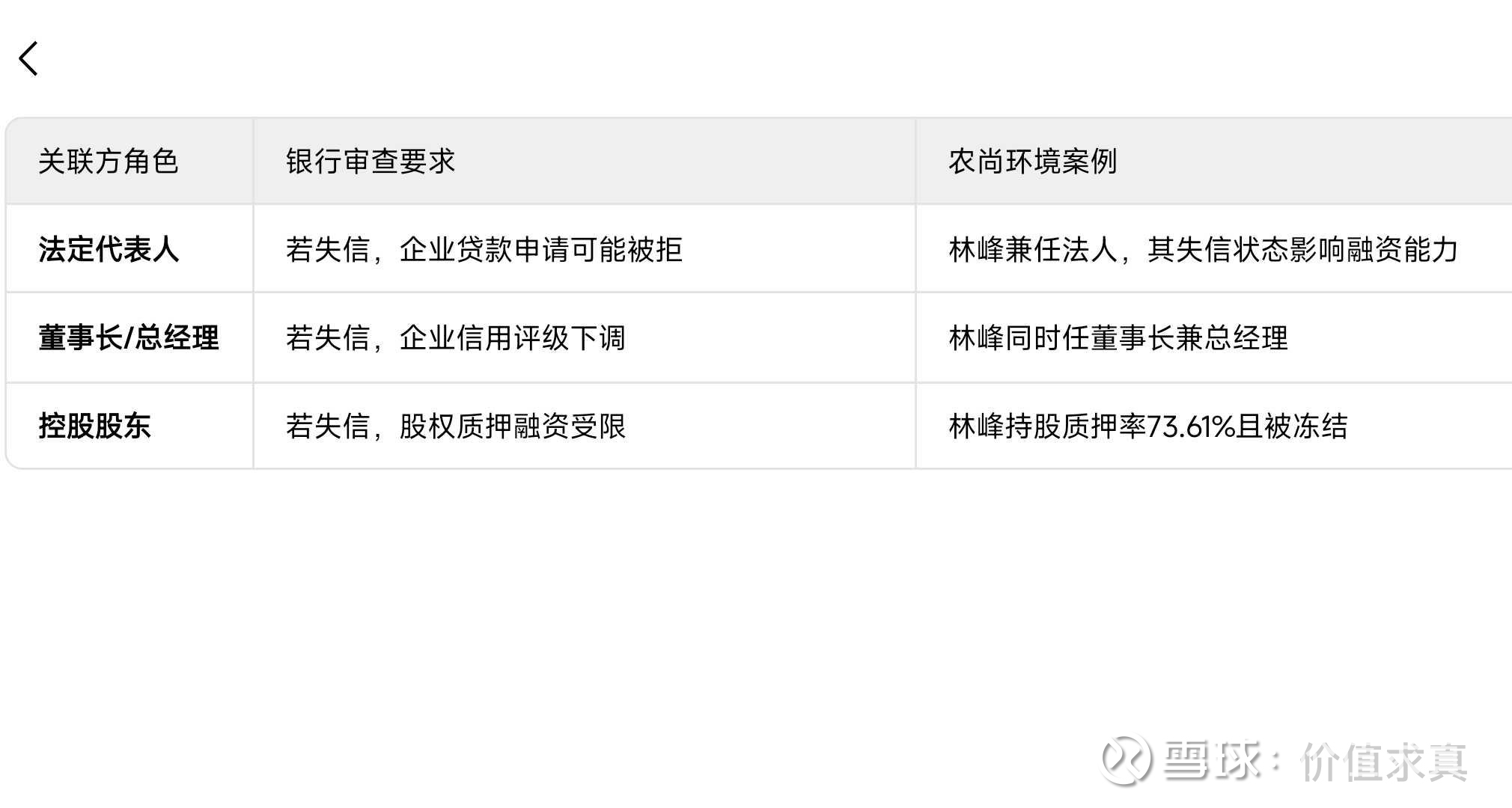 银行信贷审核红线:银行风控系统自动拦截失信主体作为借款人或担保人的贷款申请,农尚环境半年报披露控股股东林峰因股份质押纠纷被列为失信被执行人(涉及金额2.27亿元),直接导致其无法为公司新增贷款提供个人担保。