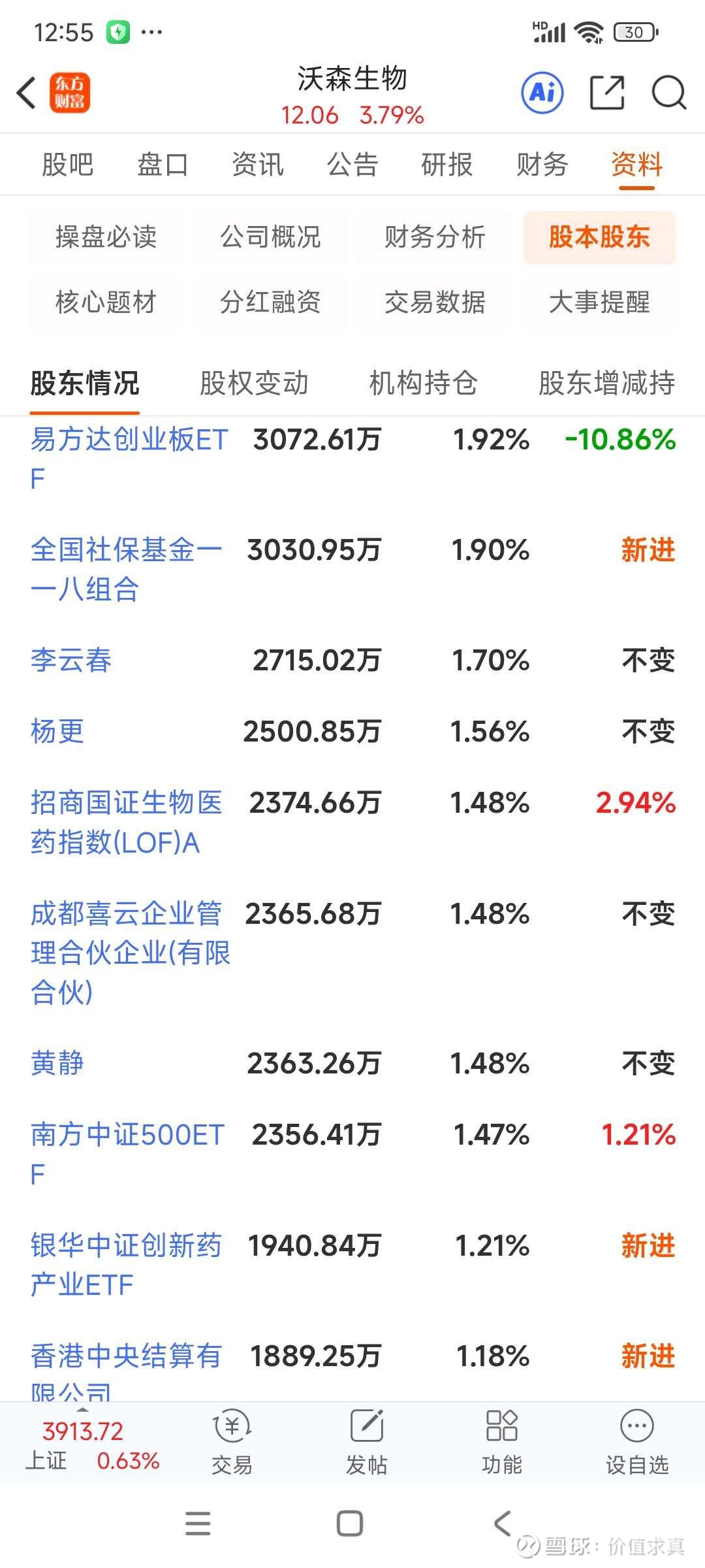 随着社保基金领衔重仓、机构持仓大幅提升、新实控人入主、国家级产业基金落地,沃森的股东结构正从“散户主导”转向“机构+产业资本+国家级资本主导”,为估值修复奠定坚实基础: