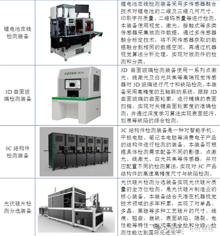 公司的智能检测装备将机器视觉技术应用于工业流水线上的在线检测场景,实现对工业零部件和产品的实时在线尺寸与缺陷检测。公司的智能检测装备替代人眼实现尺寸及缺陷的智能检测,消除人为因素导致的产品质量波动,大幅提高生产效率、降低综合生产成本;公司的智能检测装备在检测精度、速度、准确率等方面均达到国际先进水平。