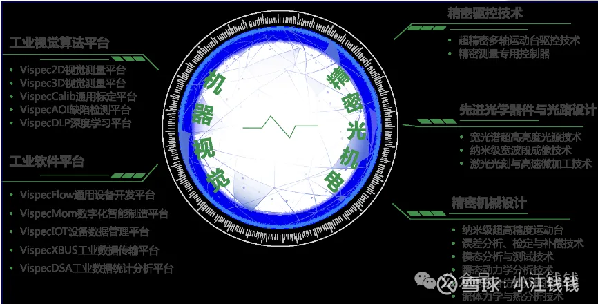 公司核心技术包括工业视觉算法平台、工业软件平台、精密驱控技术、先进光学器件与光路设计、精密机械设计等五大领域,具体关键技术点如下: